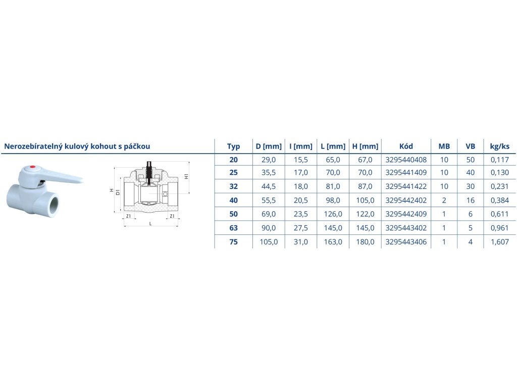 PP-R vodovodní kulový kohout s páčkou 20 mm