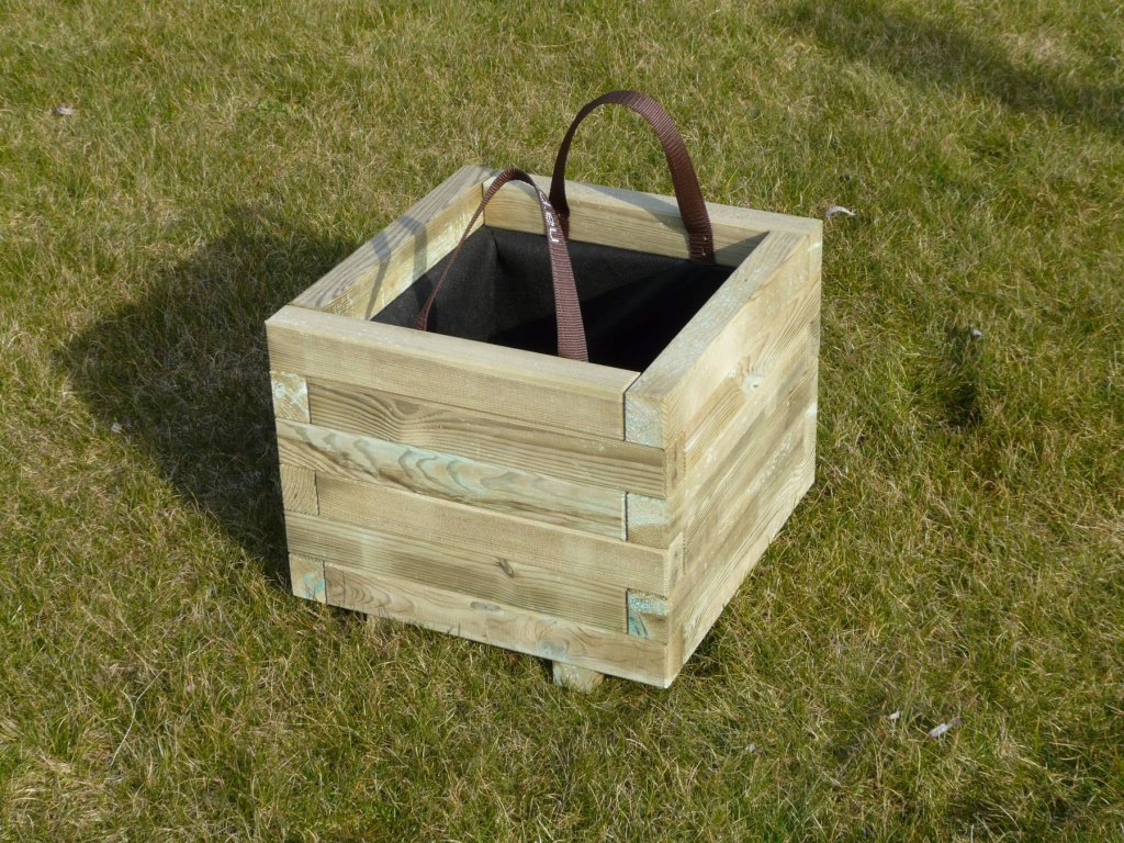 Přenosný box (vyvýšený záhon) na květiny o rozměru š 40 x d 40 x v 34 cm. Dřevo je ošetřeno tlakovou impregnací, přesto ho doporučujeme ošetřit vhodnou povrchovou úpravou pro venkovní dřevo (podle vlastní volby) - tzn. protiplísňový nátěr plus např. lazura. Při vrstvení půdy ve vyvýšeném záhonu doporučujeme strukturu půdy přizpůsobit rostlinám. Box je vystlán geotextílií a má dvě ucha na přenášení.
