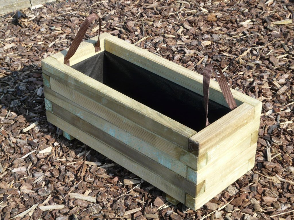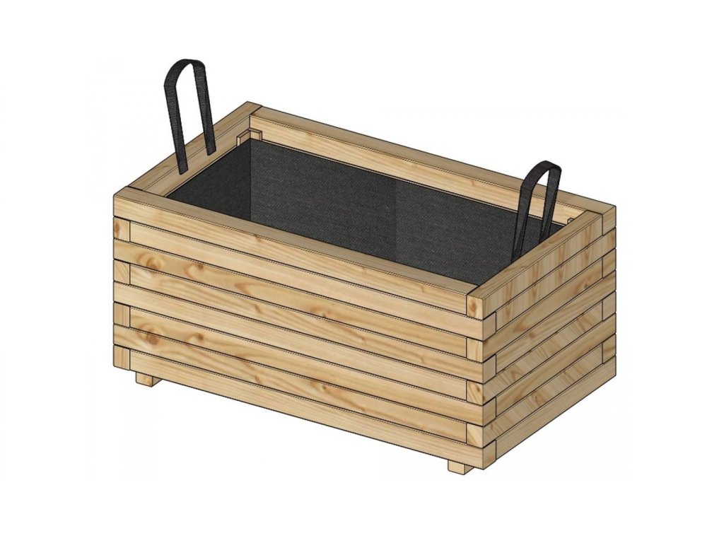 Přenosný box na květiny (vyvýšený záhon) o rozměru š 30 x d 70 x v 28 cm. Dřevo je ošetřeno tlakovou impregnací, přesto ho doporučujeme ošetřit vhodnou povrchovou úpravou pro venkovní dřevo (podle vlastní volby) - tzn. protiplísňový nátěr plus např. lazura. Při vrstvení půdy ve vyvýšeném záhonu doporučujeme strukturu půdy přizpůsobit rostlinám. Box je vystlán geotextílií a má dvě ucha na přenášení.