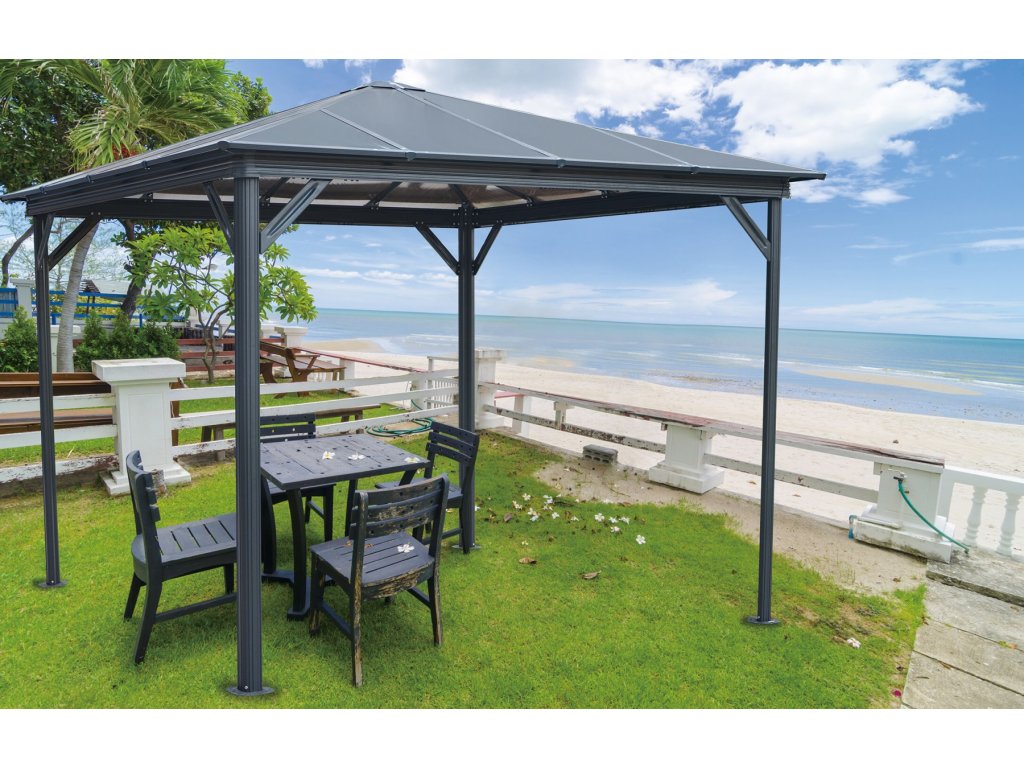 Hliníkový zahradní altán LANITPLAST 33 antracit + čirý PC