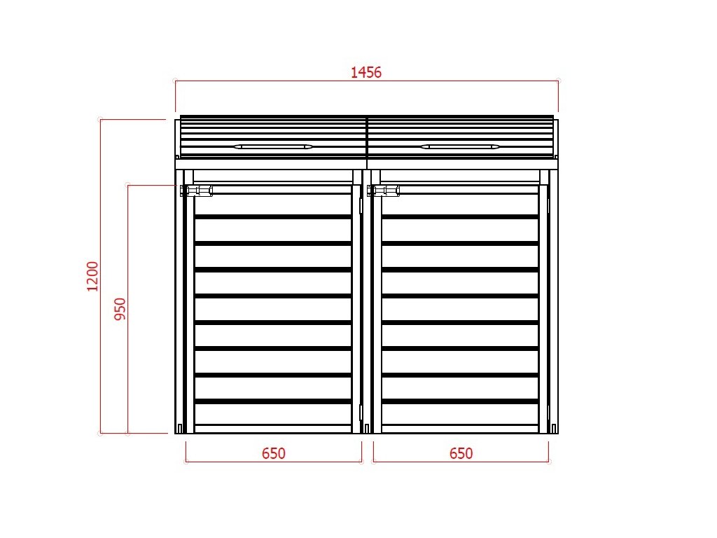 Dřevěný úložný box na 2 popelnice. Dřevo je ošetřeno tlakovou impregnací proti plísní, přesto ho doporučujeme ošetřit vhodnou povrchovou úpravou pro venkovní dřevo (podle vlastní volby) - tzn. protiplísňový nátěr plus např. lazura.