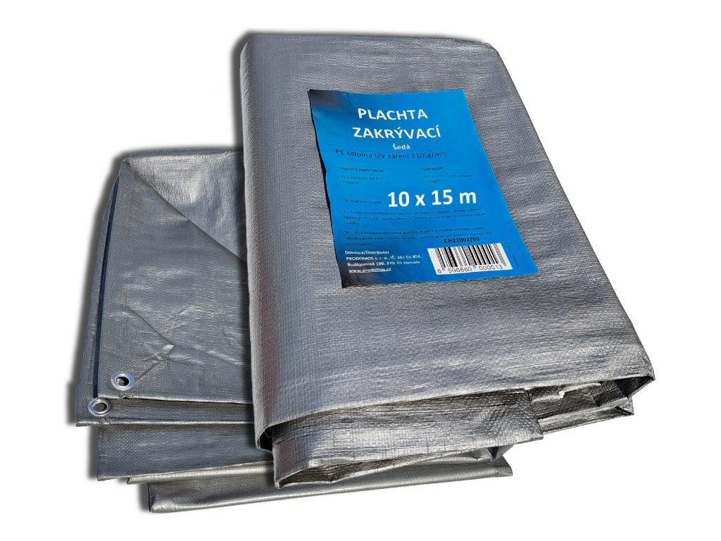 Šedá krycí plachta PRODOMOS 210 g/m² 10 x 15 m